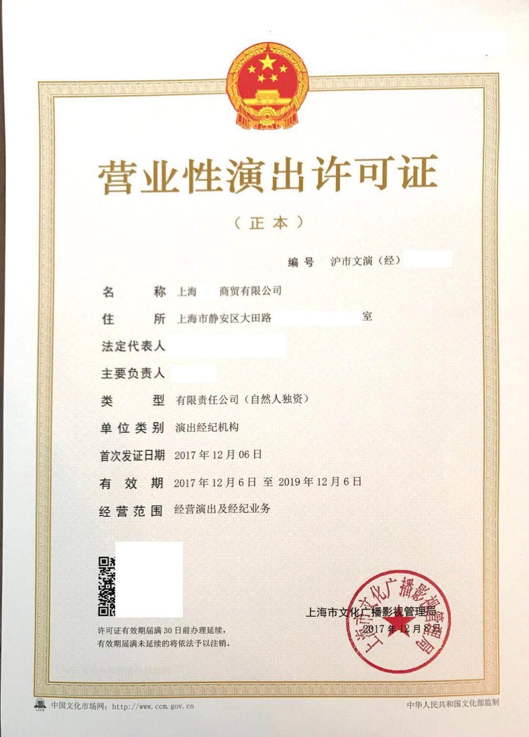 (五)3名以上專職演出經(jīng)紀(jì)人員的資格證明 (中國演出行業(yè)協(xié)會頒發(fā)的演出經(jīng)紀(jì)人資格證)原件、復(fù)印件及身份證復(fù)印件;