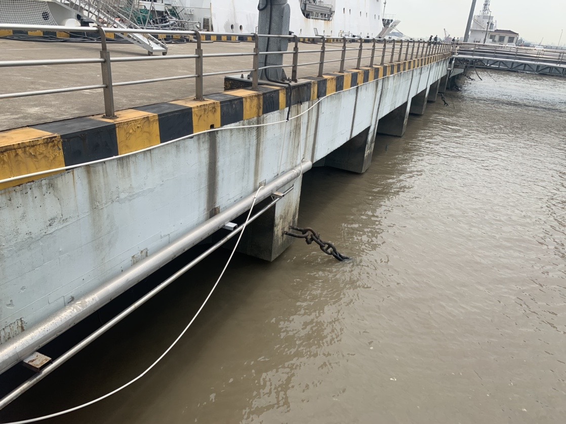 (2)輪胎護舷整體情況完好,未發(fā)現(xiàn)破損情況,系船柱基本完好、無缺失、無嚴重缺陷,但系船柱原有防腐涂層存在起皮、銹蝕的現(xiàn)象。