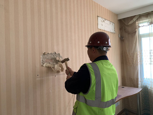 4、墻體空,墻皮脫落。墻體內部各砌塊、層面之間連接不好,在壓力、溫差等作用下形成中空,致使墻體整體抗壓能力降低,表面粉刷層易于脫落。有時在沒有形成空鼓的情況下,由于墻表面粉刷材料質次,粉刷工藝不合要求,也會造成墻皮大面積脫落。